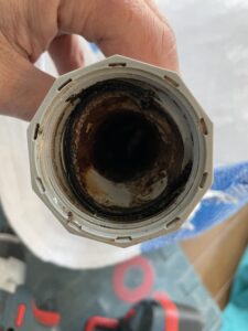 上記の画像は、排水管に油分が溜まっているものですが、
